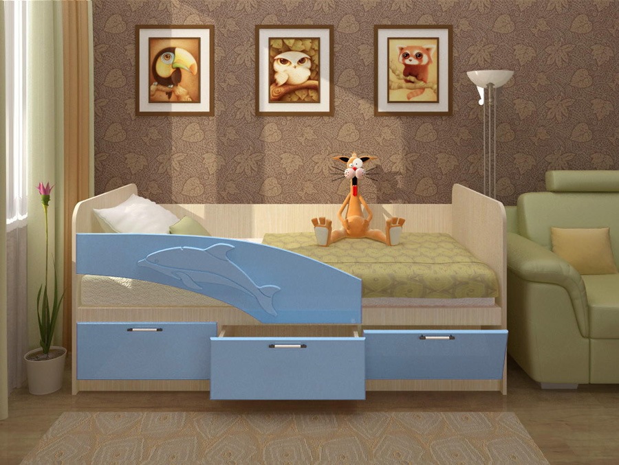 Кровать "Дельфин 3D" - это находка на мебельном рынке для маленьких покупателей. Высокий борт с 3D рисунком, выполненный в цвете Голубой Металлик, за счет чего, дельфинчик выглядит еще более ярким - защитит детей во сне. Новые и удобные ручки - не дадут пораниться. Расцветка подойдет как девочкам, так и мальчикам.