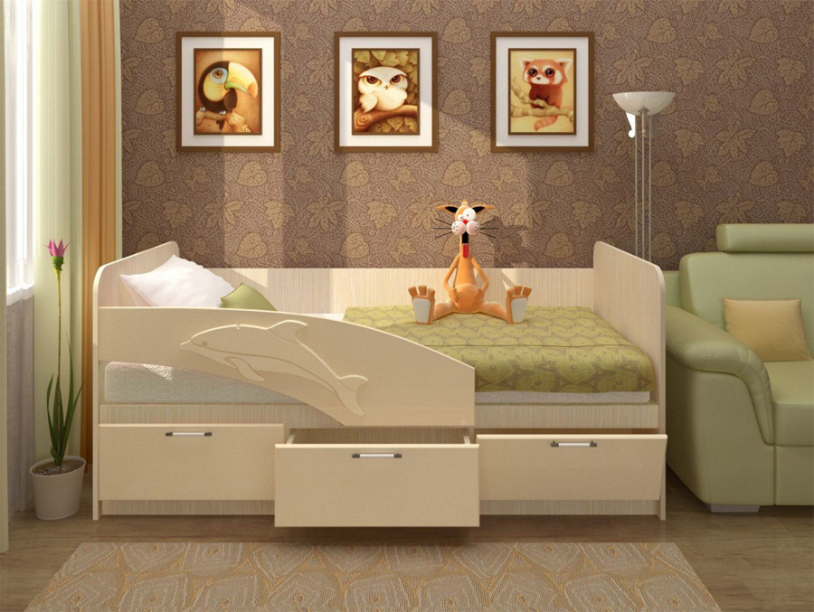 Кровать "Дельфин 3D" - это находка на мебельном рынке для маленьких покупателей. Высокий борт с 3D рисунком, выполненный в цвете Ваниль Металлик, за счет чего, дельфинчик выглядит еще более ярким - защитит детей во сне. Новые и удобные ручки - не дадут пораниться. Расцветка подойдет как девочкам, так и мальчикам.